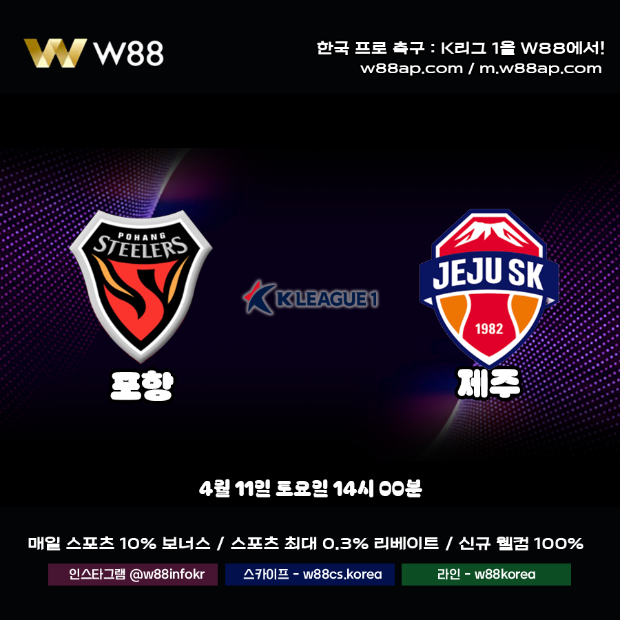 [K리그1] 2026년 04월 11일 토요일 한국 프로 축구 경기 일정 [#경기일정– #한국프로축구] 2026년 4월 11일 토요일 #K리그1 14:00 #포항 vs #제주 14:00 #서울 vs #전북 16:30 #인천 vs #울산 16:30 #광주 vs #부천